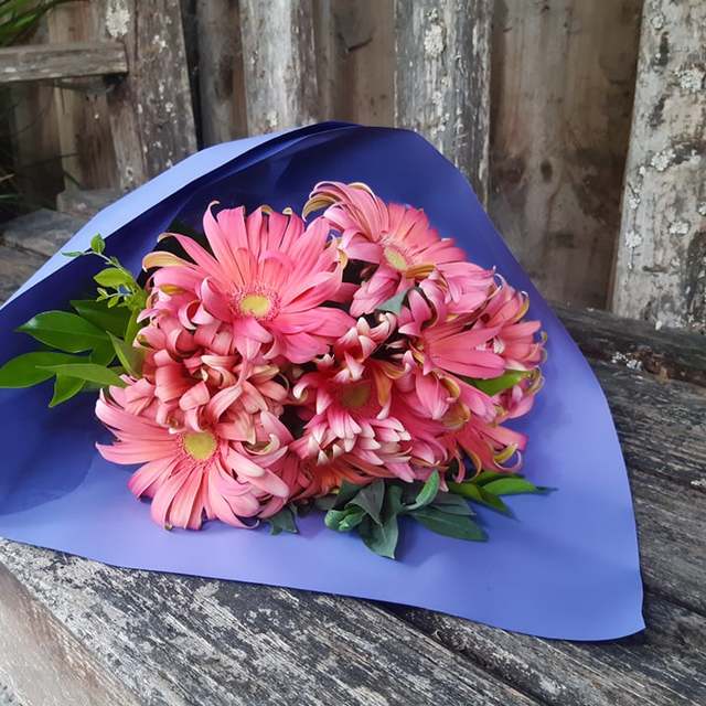 A new variety of Gerbera, with pretty filly two tone petals on long stems. They are great lasting flowers that help to bring sunshine into your life. Choose from Pink or a vibrant mix of colours. Great for any occasion. Flowers come wet wrapped with foliage in a beautifully wrapped Bouquet.