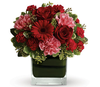 A very cute arrangement packed full of Carnations, Gerbera and roses. A beautiful addition to your kitchen or dining table.