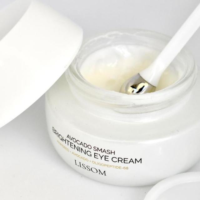 Lissom Avocado Smash Brightening Eye Cream instantly targets fine lines and wrinkles and reduces the look of dark circles, delivering age-defying results. Avocado, kiwiseed and peptides nourish the eye area and visibly brighten and target dry skin prone to developing fine lines. Oligopeptide-68 is clinically proven to brighten skin by reducing melanin production, progressively lightening hyperpigmented spots and darkened areas. Use day and night with the silver wand applicator that comes with the eye cream to keep the eye area looking refreshed.