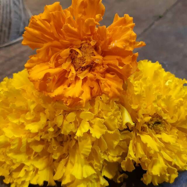 Luscious Lemon, Golden yellow and Orange Marigold Flowers Heads, beautiful big bright and wonderful.